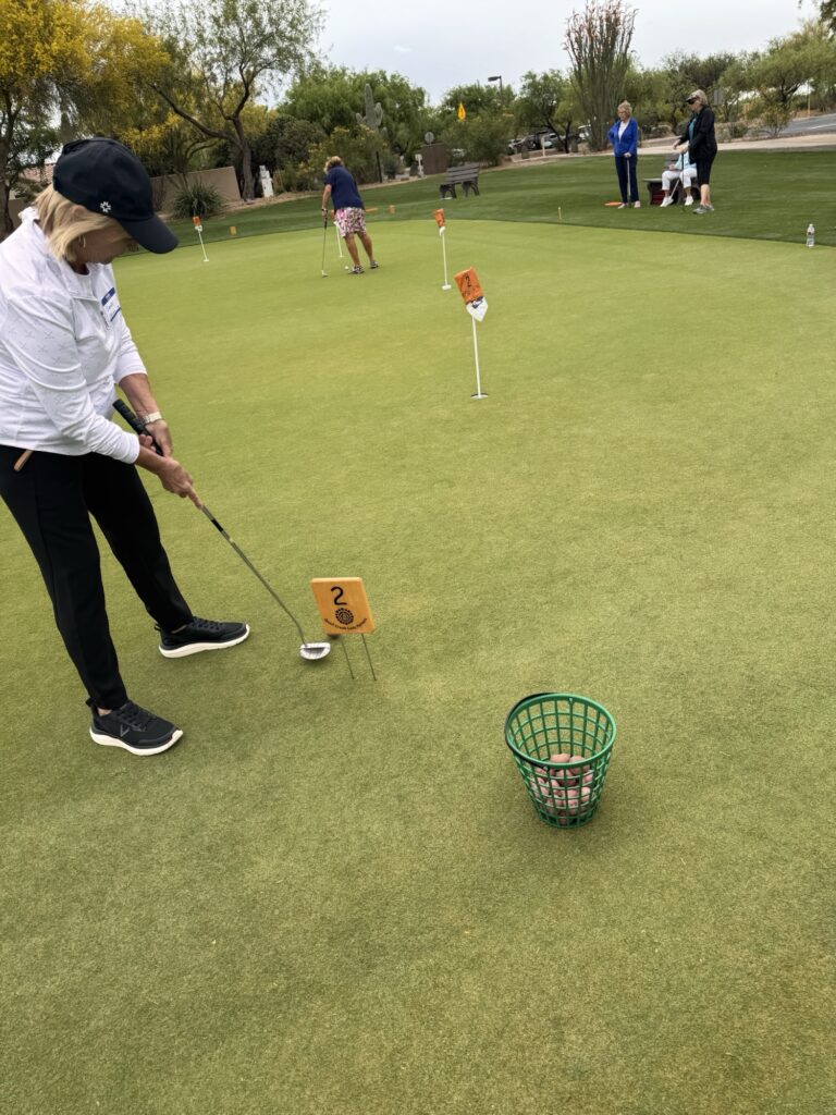 Our guests arrived by bus and were greeted with a lively and enthusiastic welcome! After check-in, the ladies enjoyed a wonderful morning of putting, laughter, and conversation under beautiful Arizona skies.