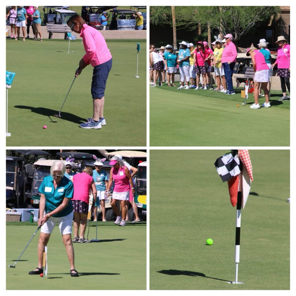 The Quail Creek Lady Putters were delighted to host the SaddleBrooke Ranch Ranchette Putters for a special Bunny Bogey Bash on the Quail Creek putting green.