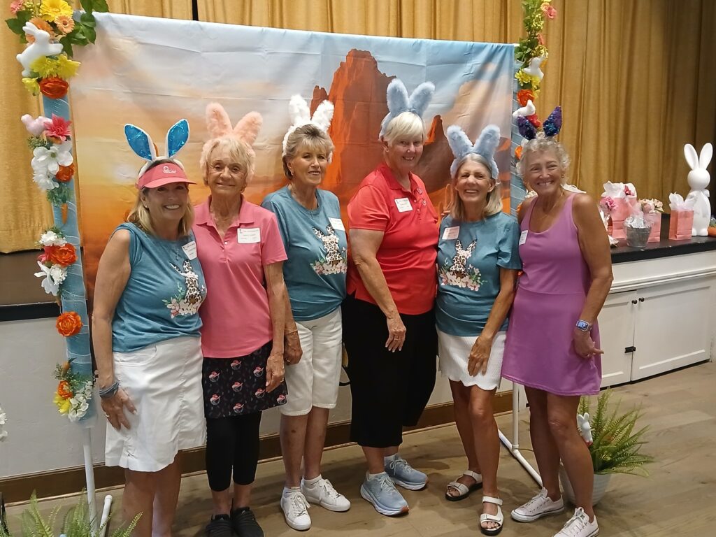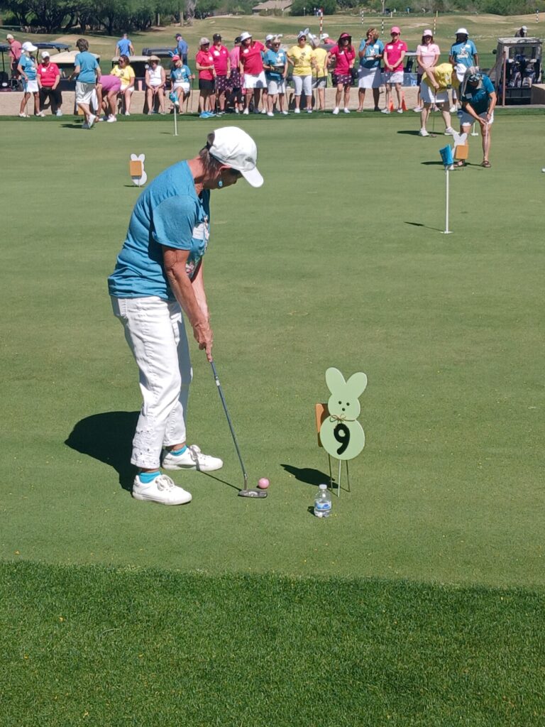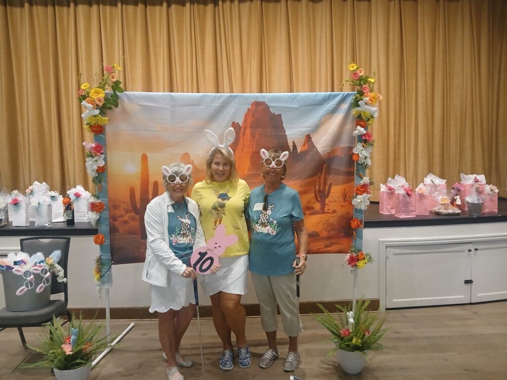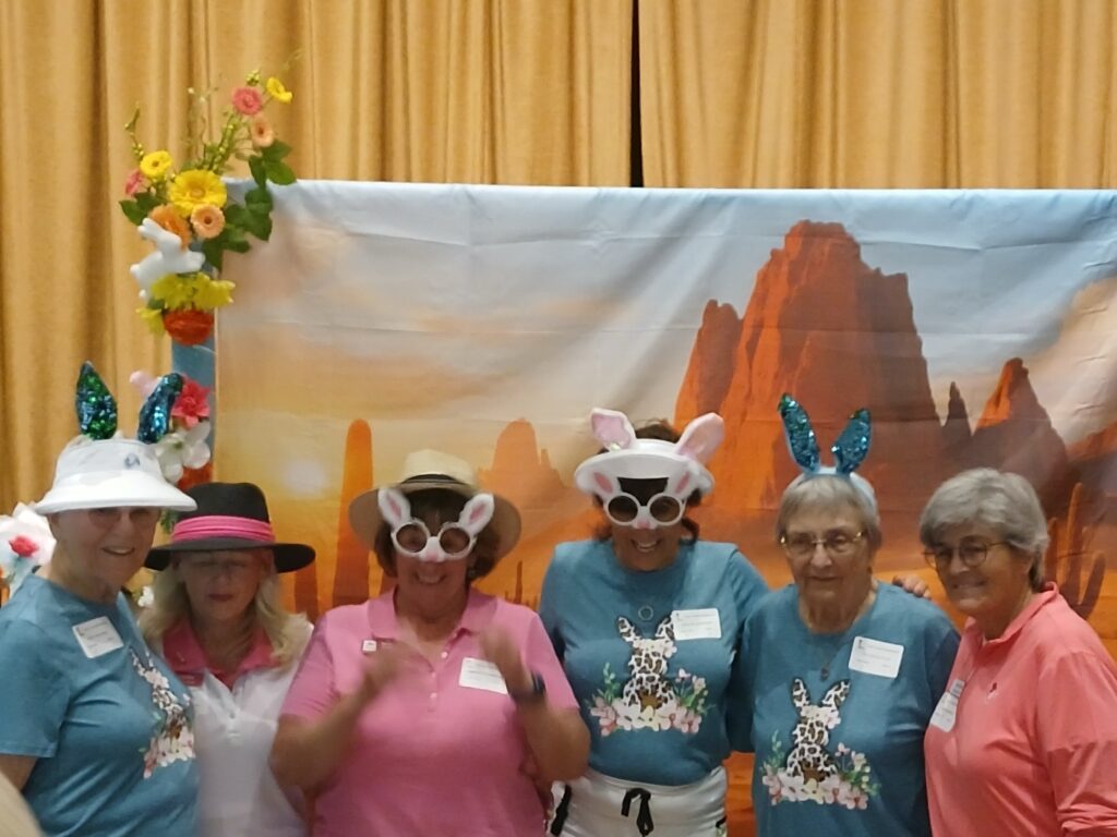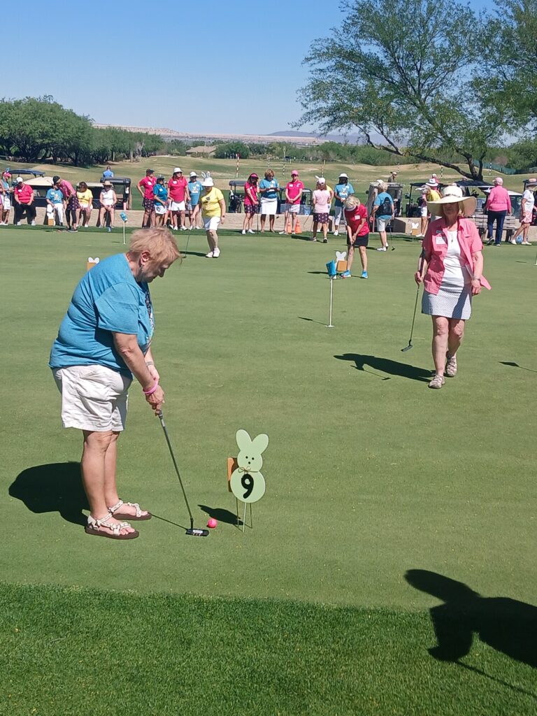 The Quail Creek Lady Putters were delighted to host the SaddleBrooke Ranch Ranchette Putters for a special Bunny Bogey Bash on the Quail Creek putting green.