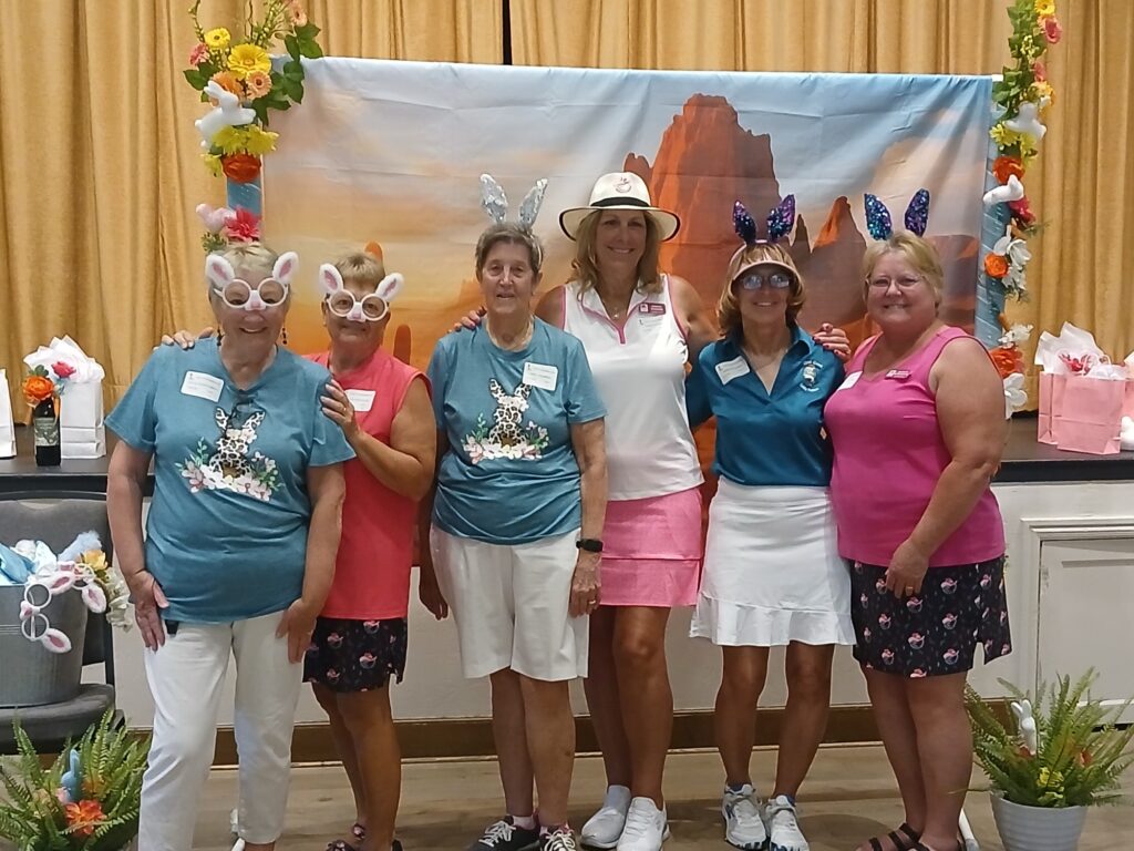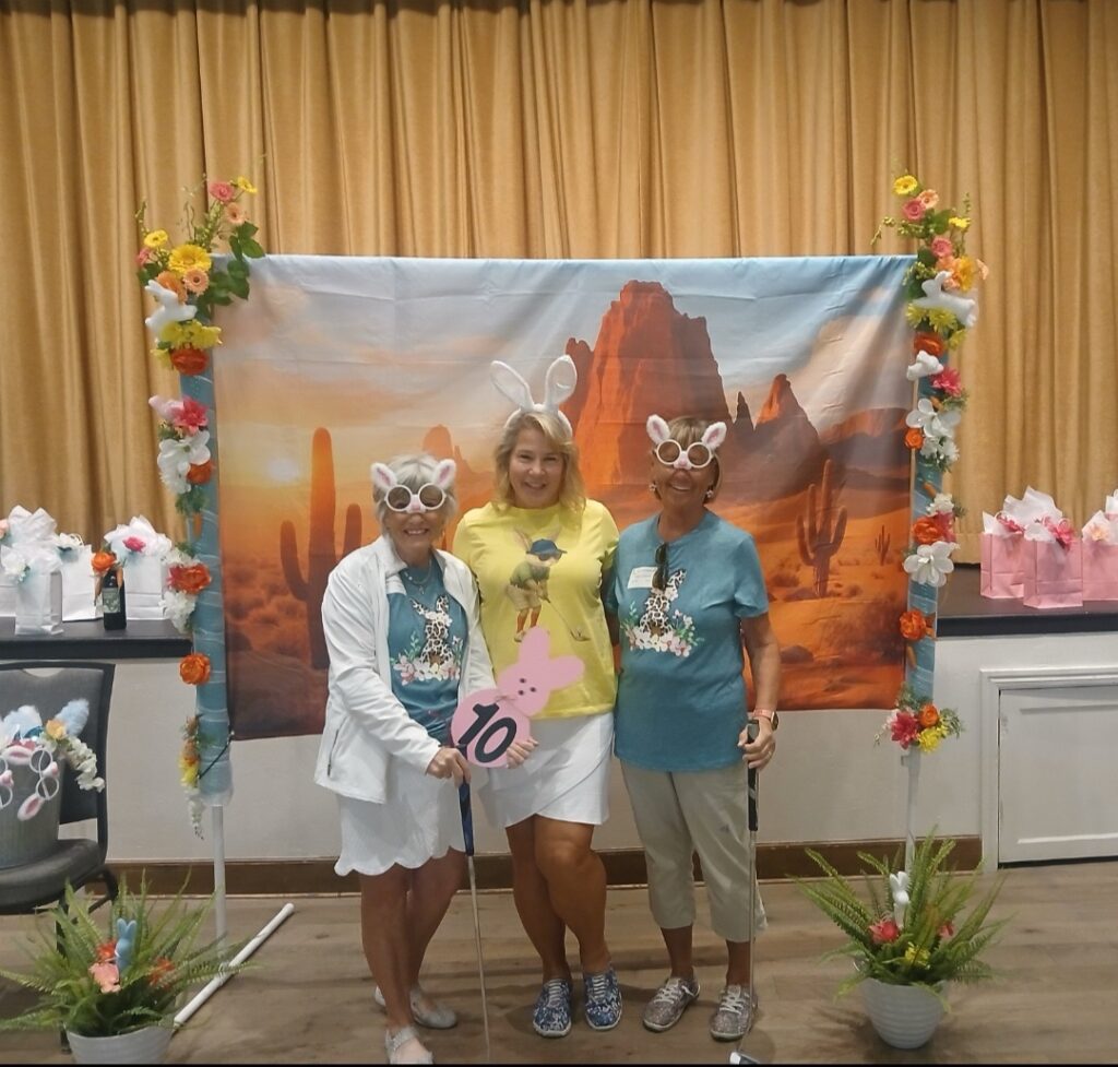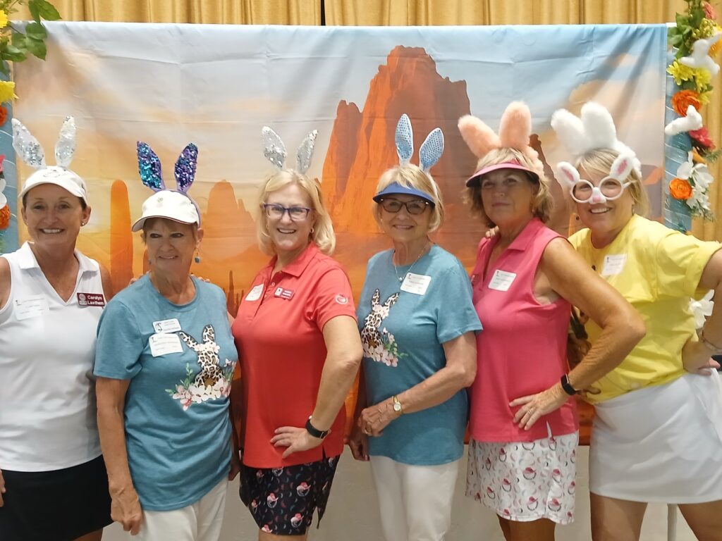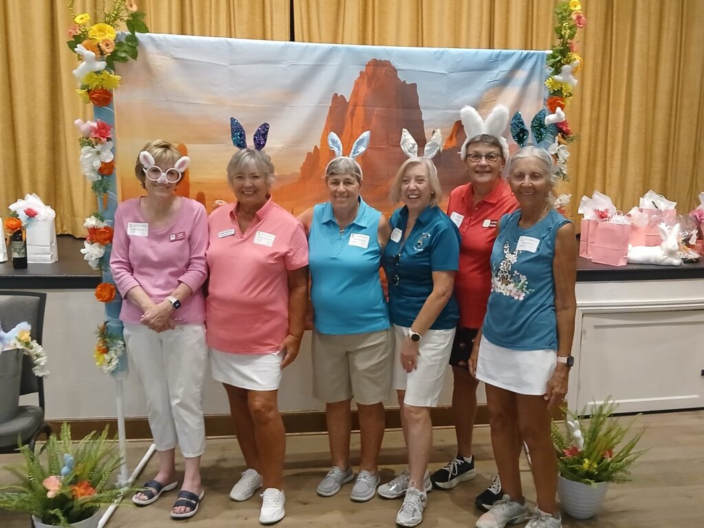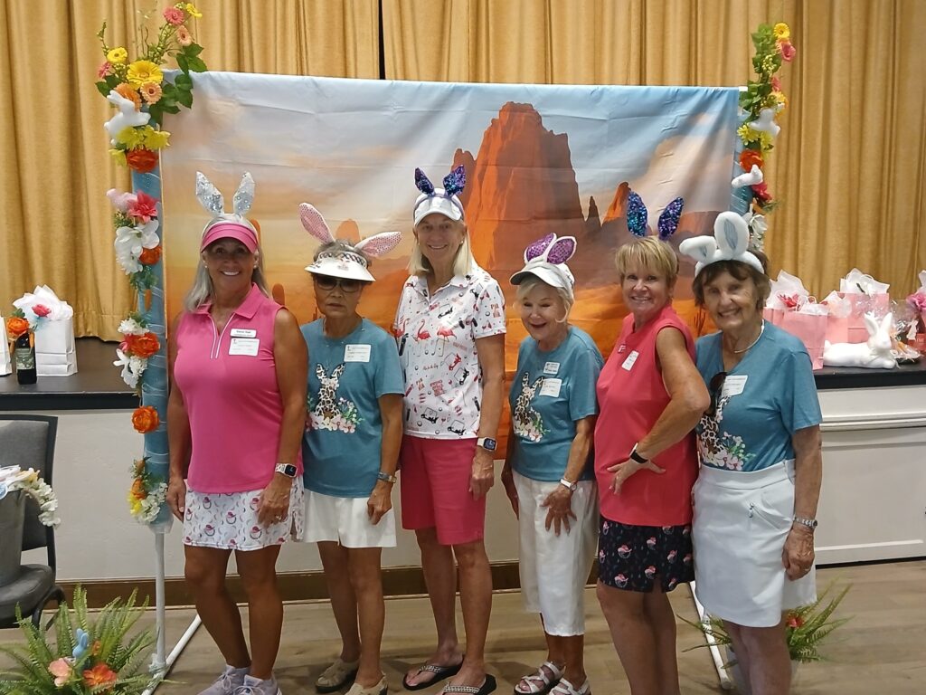 The Quail Creek Lady Putters were delighted to host the SaddleBrooke Ranch Ranchette Putters for a special Bunny Bogey Bash on the Quail Creek putting green.
